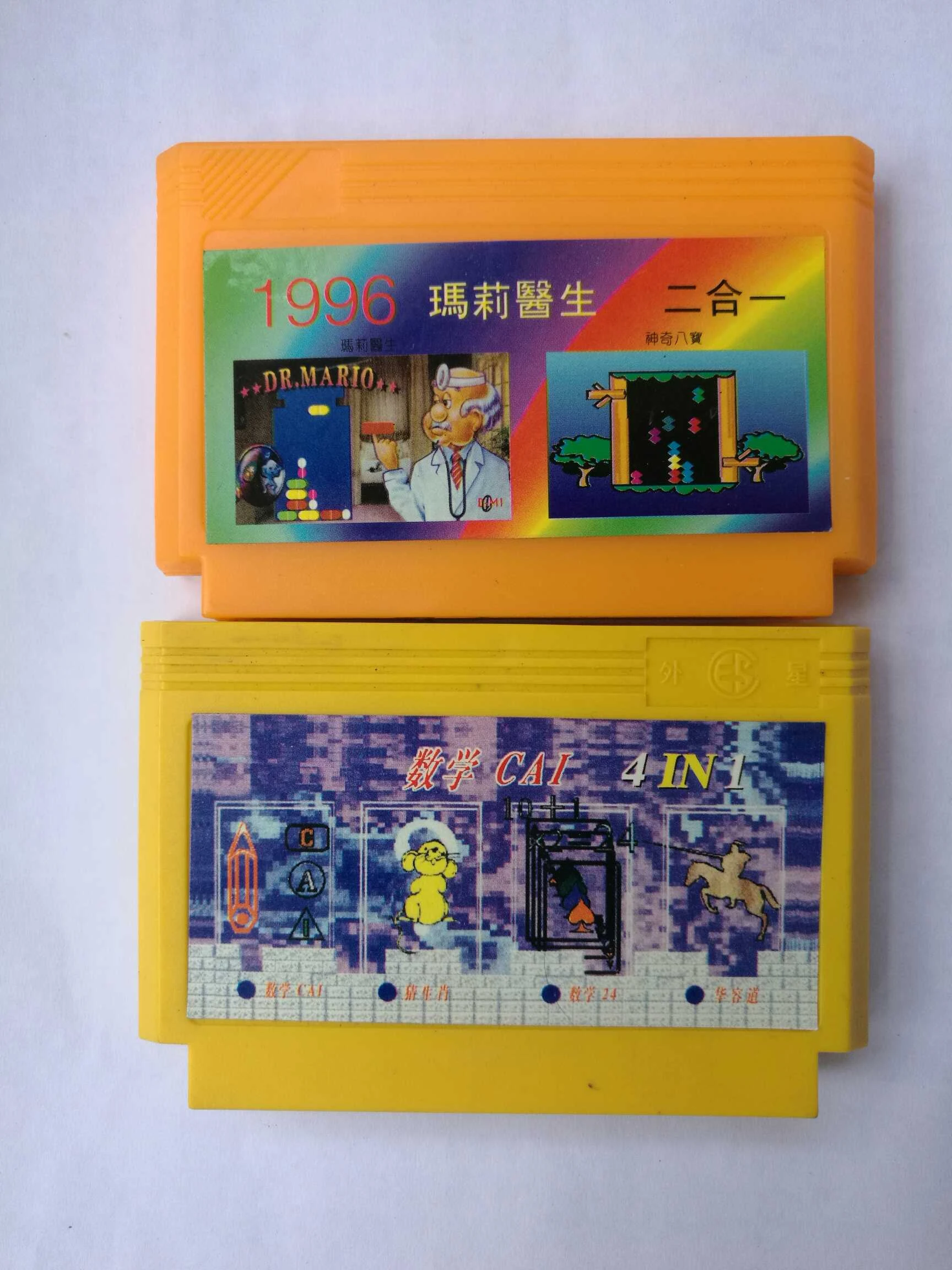 The cartridge beneath a Dr. Mario bootleg cartridge.