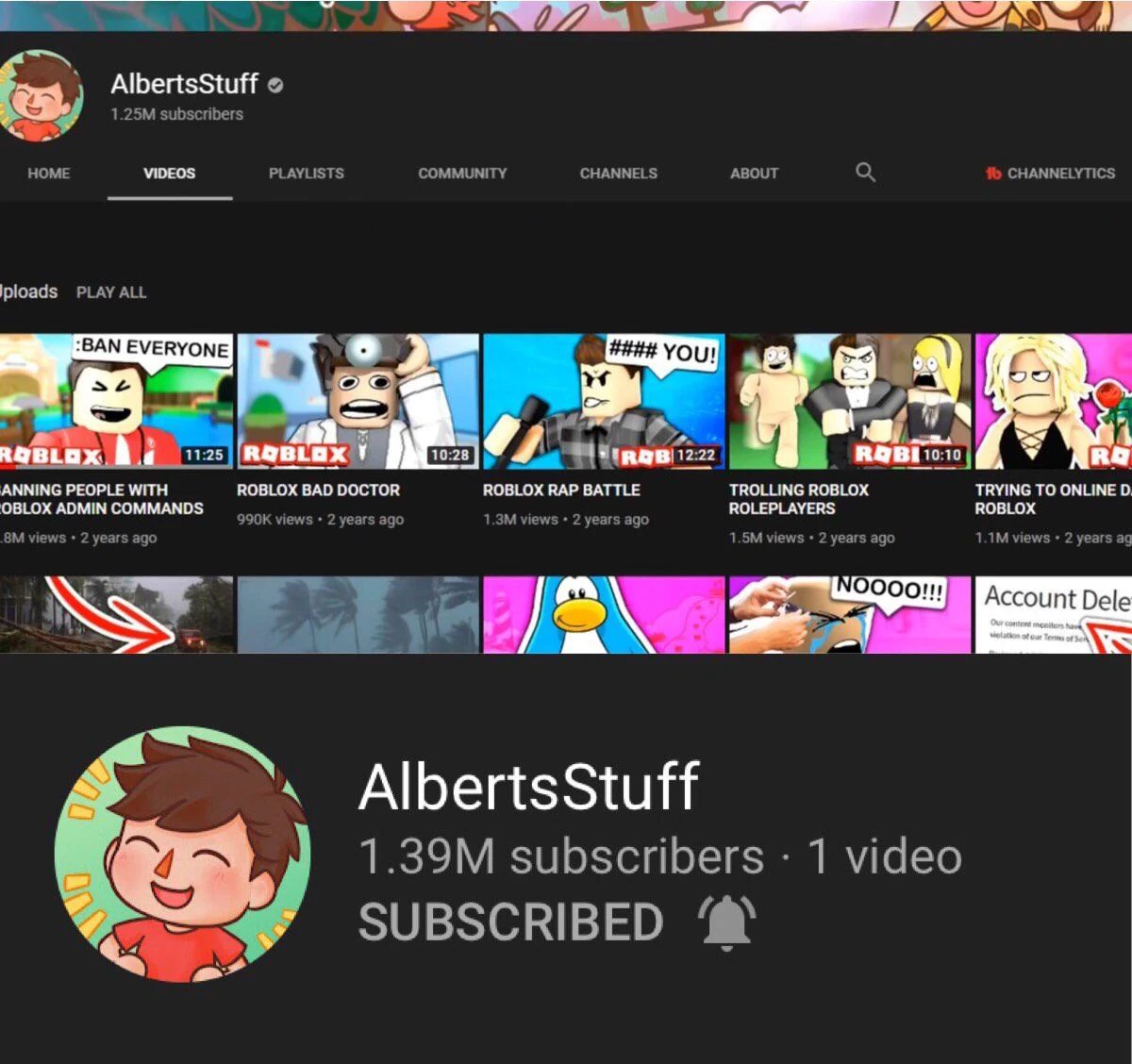 AlbertsStuff was Albert's former channel, In August 2020, His videos were deleted by Albert, and went missing.