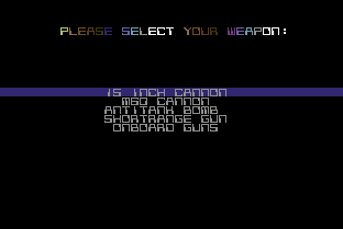 Alert is a Commodore 64 game made in an unknown year. No one is credited for this game. It's rather similar to the tank mode in Combat! for the Atari 2600, but with updated graphics, & information at the bottom. It also has a weapon select where you do indded select one of 5 weapons to use in the game. Only this little demo is known to circulate.