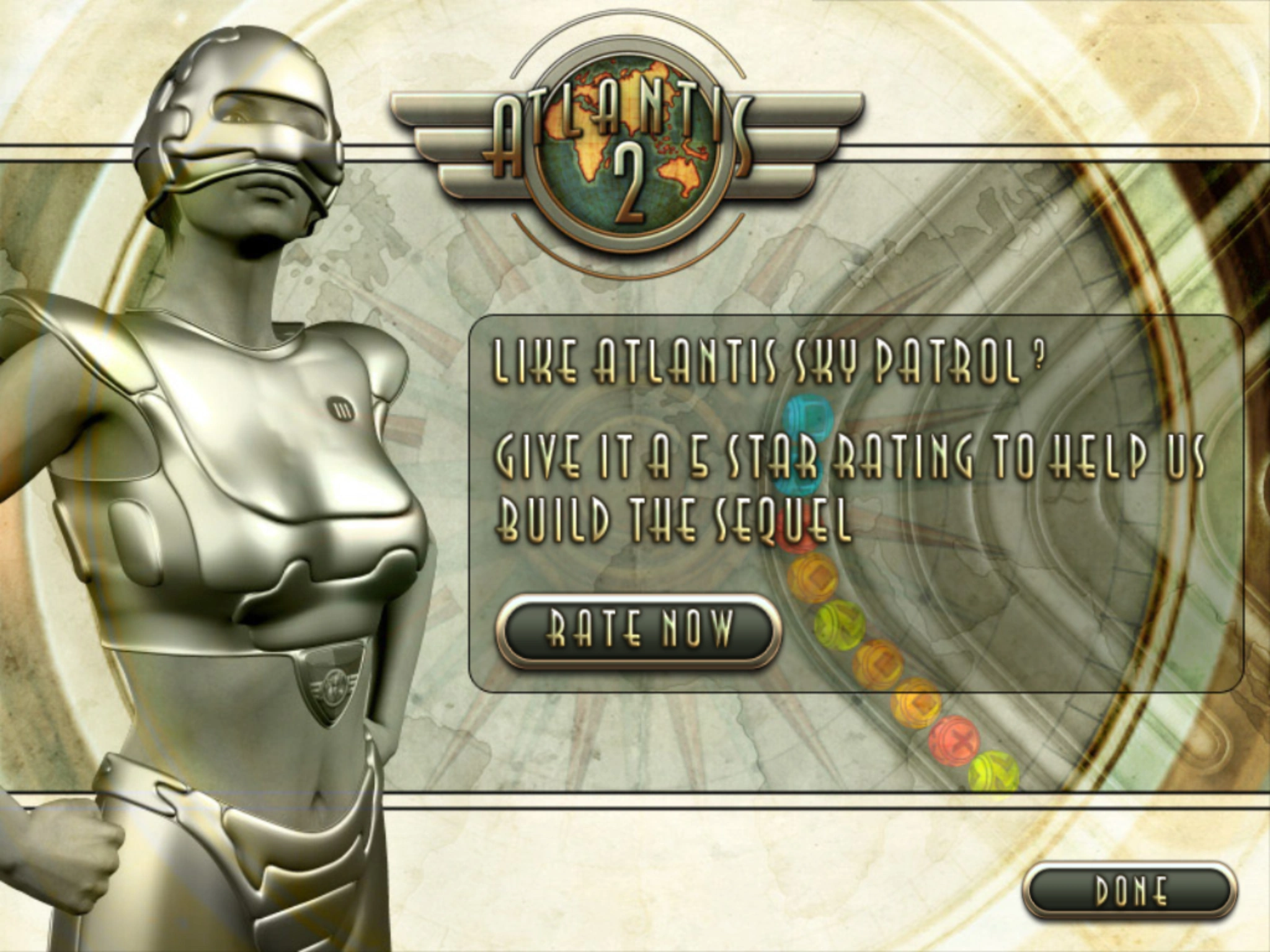 Atlantis 2 was a sequel to the 2006 Pc game Atlantis sky patrol, very little is know about this game and the only thing that confirms its existence is a promotional image from the iOS version of Atlantis sky patrol (which no longer exists). It is not to be confused with the Atari 2600 game of the same name.