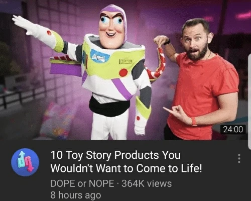 Dope or Nope is a channel that centers around reviewing products and giving them the rating Dope or Nope, this episode called “”10 Toy Story Products you wouldn’t want to come to life!”” Has been either deleted or private by the channel for unknown reasons