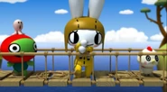 This program features three animal characters: a brave but gullible turtle named Ga who was sent to find a cure for the king; Co, a noble chicken; and Myo, a fugitive kung-fu rabbit.[85]
