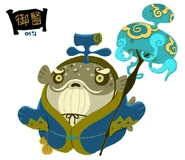 The show was about a cunning, cheerful, greedy, kung-fu Bruce Lee-expy braggart and arrogant treasure-motivated rabbit named Myo who is a thief who is skilled in martial arts and likes to take treasure for himself, has foney ideas and got away using his "foney magic", with him also having "speed air kicking" abilities[41] who is also faster than the average rabbit[42], a curious, innocent, happy and outgoing scholarly turtle (who really only learned nonsensical information) with a baby octopus on his head who wants to know more about life on land and is curious about life on land who was sent from the sea ordered by the Dragon King's servants to find a cure for the Dragon King's disease (a yeouiju) named Ga who Myo is the "land guardian" of as Ga maintains his innocence despite how scholarly and intelligent he seems his intelligence is overpowered by his innocence, and a hasty, quick to act amnesiac chicken named Kuu (later renamed to Co and originally known as Kku and Judo[43]) who wishes to fly despite being only a chicken and was reincarnated as a chicken after her death as a phoenix, granting her incredible strength.[42] She was originally a phoenix in her past life, which makes her want to be able to fly again and because of her being reincarnated as a chicken after being a phoenix , it gave her amazing strength capabilities. She is a very strong character who is capable of carrying heavy things like large rocks and boulders. Her strength allows her to carry very heavy objects. They are all very different and have unalike and unmatching personalities as they search for the yeouiju to cure the Dragon King's disease (who fell ill to it due to the surrounding pollution[44]) and for their own reasons as well. Myo, Ga and Kuu all have different goals and are all completely have unsimilar personalities to each other. However, they are all friends and work together despite their different personalities and goals on their quest to find the yeouiju to cure the Dragon King's disease. However, their quest to find the yeouiju is always thwarted either by a giant fish named Auryong who keeps the yeouiju in his mouth only to swallow it and quickly dissapear, other rabbits who are enemies with Myo (possibly because of his tendency to steal from them), and them being sidetracked exploring the world (this is especially apparent in the 2007 shorts) with Myo usually being a victim to fill Kuu's curiosity.[45] Their personalities all greatly contrast each other, Myo is a greedy and arrogant thief, while Ga is a curious and innocent turtle and Kuu is a incredibly strong chicken who wants to fly again who is defensive and helpful to her friends, with her main goal being to be able to fly. Their main life goals contrast each other as Myo wants to find treasure, Kuu wishes to be able to fly and Ga is seeking out the yeouiju to cure the Dragon King and learn more about life on land. Despite this, they make a "strong" team. (Although their adventures end up causing them to get into a lot of mischief and trouble) The yeouiju was later replaced by medical aid from a doctor named Dr Hwa Ta when the show evolved to the "Myo Ga Co" era, and Kuu was renamed to Co at the same time.