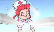 Misty sees Nurse Joy lying down lifeless on the ground, unable to move. Misty tries to wake her up, but Nurse Joy is motionless. Everyone watched sadly at Misty. Mewtwo and Mew float over to Misty. Mewtwo talks to her. Mewtwo talks about Nurse Joy's life. The magical streaks of light began to fill the sky. But a light shone on Nurse Joy in a magical mist. a magical light envelops Nurse Joy rises him into the air. Everyone watched Nurse Joy's spell being broken. Nurse Joy's Body begin to glow. Nurse Joy's disguise broke and turned into her old nursing clothes. Nurse Joy's hands shoot light from her fingers, Nurse Joy's shoes shoot light from her toes and Nurse Joy's face shoots light from herself. Nurse Joy reverts back to normal. Nurse Joy floats down on the ground. The spell was broken! Nurse Joy restoring him brought her Back to life, healing and revives. Nurse Joy awakes. Misty talks to Nurse Joy. Nurse Joy is Happy. Misty gives Nurse Joy a joyful hug. Everyone watched happily at Misty.