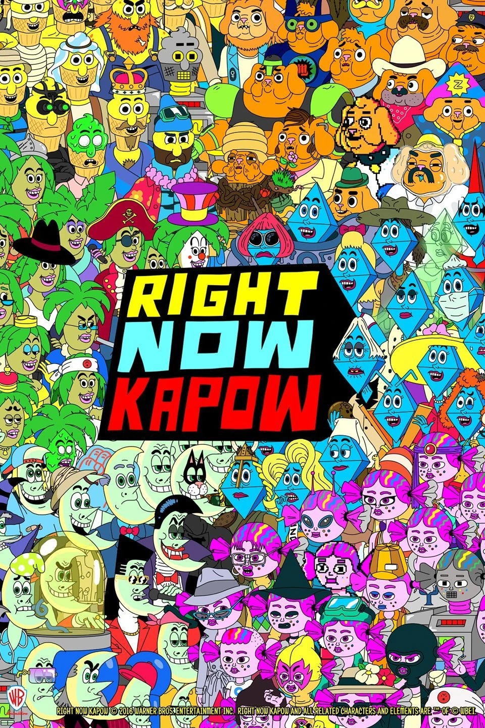In 2014, a pilot was made at Warner Bros. Animation titled "Dog, Chocolate, Ice Cream, Diamond, Cat, and Moon". It's a original pilot that was retooled into "Right Now Kapow" that aired on Disney XD for a short time between 2016 and 2017. The original pilot was screened at Warner Bros. Animation once, and people liked it. The pilot was secretly put into greenlight by Adult Swim into series for a late 2015 release. However, at the end of August 2015, Warner Bros. Animation later departed with Adult Swim, and sold it to Disney XD instead, with Disney XD approving it. The series was announced on September 2015 as working title "Airline Earth", that would later become "Right Now Kapow". In the original pilot, Chocolate was a early design for Candy, while Cat was also a early design for Plant. Unlike the show which only uses 2D animation, it is a mixed-media pilot, containing 2D animation, live action, puppetry, and CGI animation, lasting only 11 minutes. But when it was sold to Disney XD, Warner Bros. Animation made some changes, making the show only using 2D animation, and changing Chocolate and Cat to Candy and Plant, respectively. Not much is known about the pilot lost