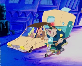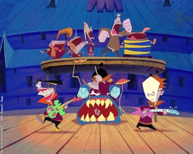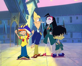 The Baskervilles is a British-French-Canadian animated children's television series about a British family living in the most twisted theme park in the world. The series was originally created by series co-director Nick Martinelli and series co-writer Alastair Swinnerton, and eventually distributed and co-financed by CINAR (now WildBrain, formerly DHX Media) and designed, produced and co-financed by Alphanim. This series was aired on Teletoon in 1999 to 2001.
